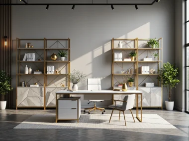 Ranking najlepszych regałów w stylu glamour do biura. Odkryj złote, szklane i marmurowe modele, które odmienią Twoje wnętrze i podkreślą prestiż Twojej firmy.