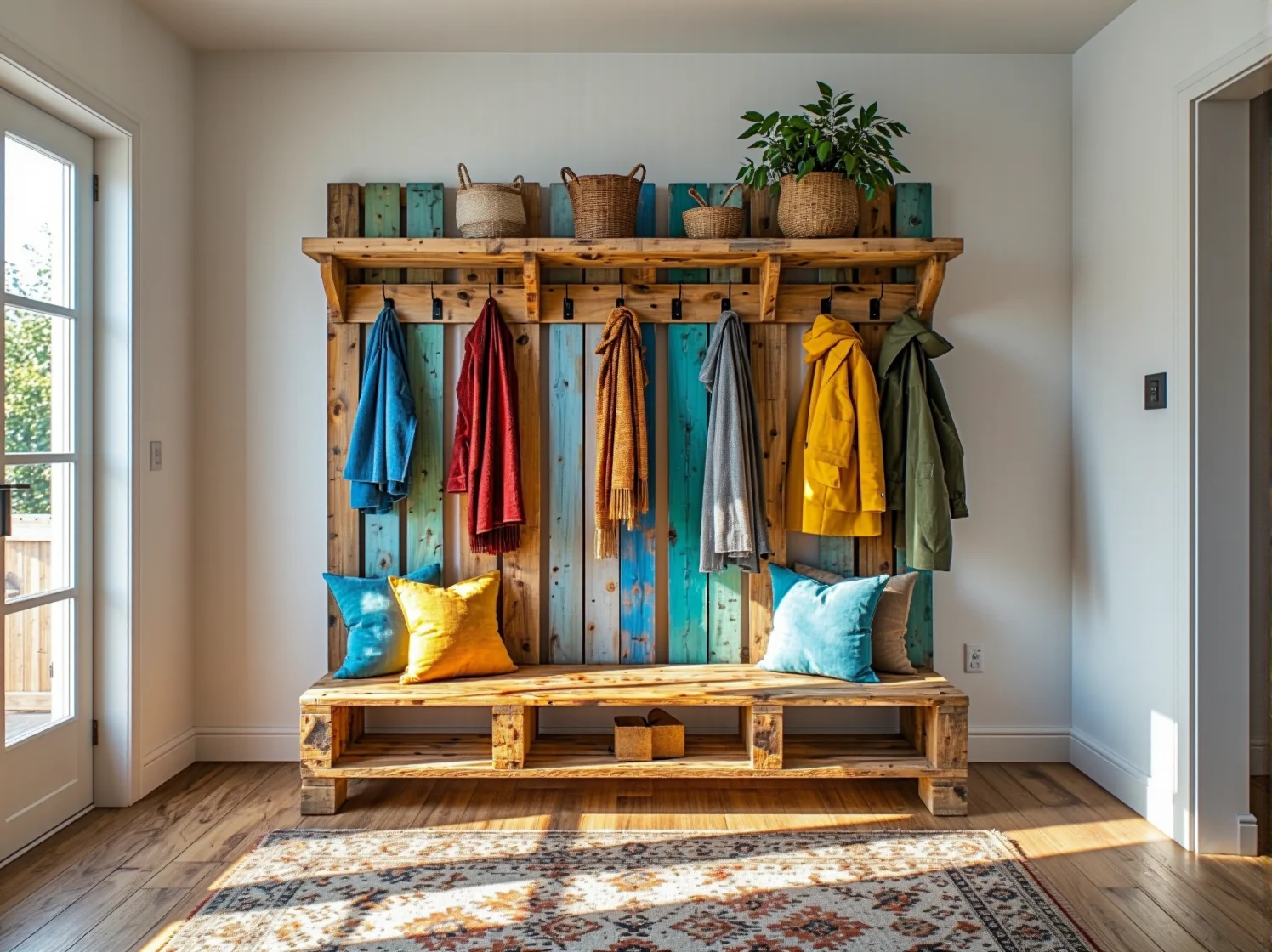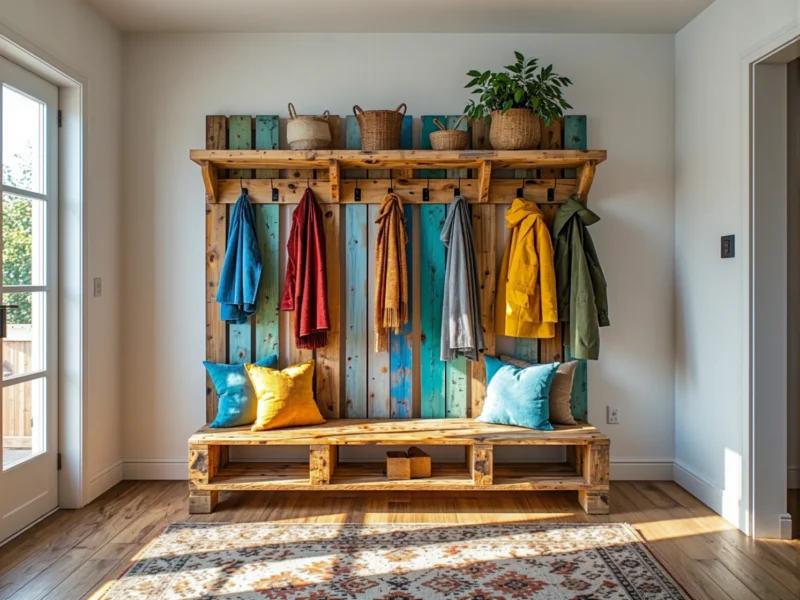 Palety to klasyka recyklingu meblowego. Z jednej palety Euro możesz odzyskać kilka solidnych desek, które posłużą jako podstawa ściennego wieszaka. Kluczem do oryginalności w tym projekcie nie jest jednak sama deska, ale to, co na niej zamontujesz jako haczyki.